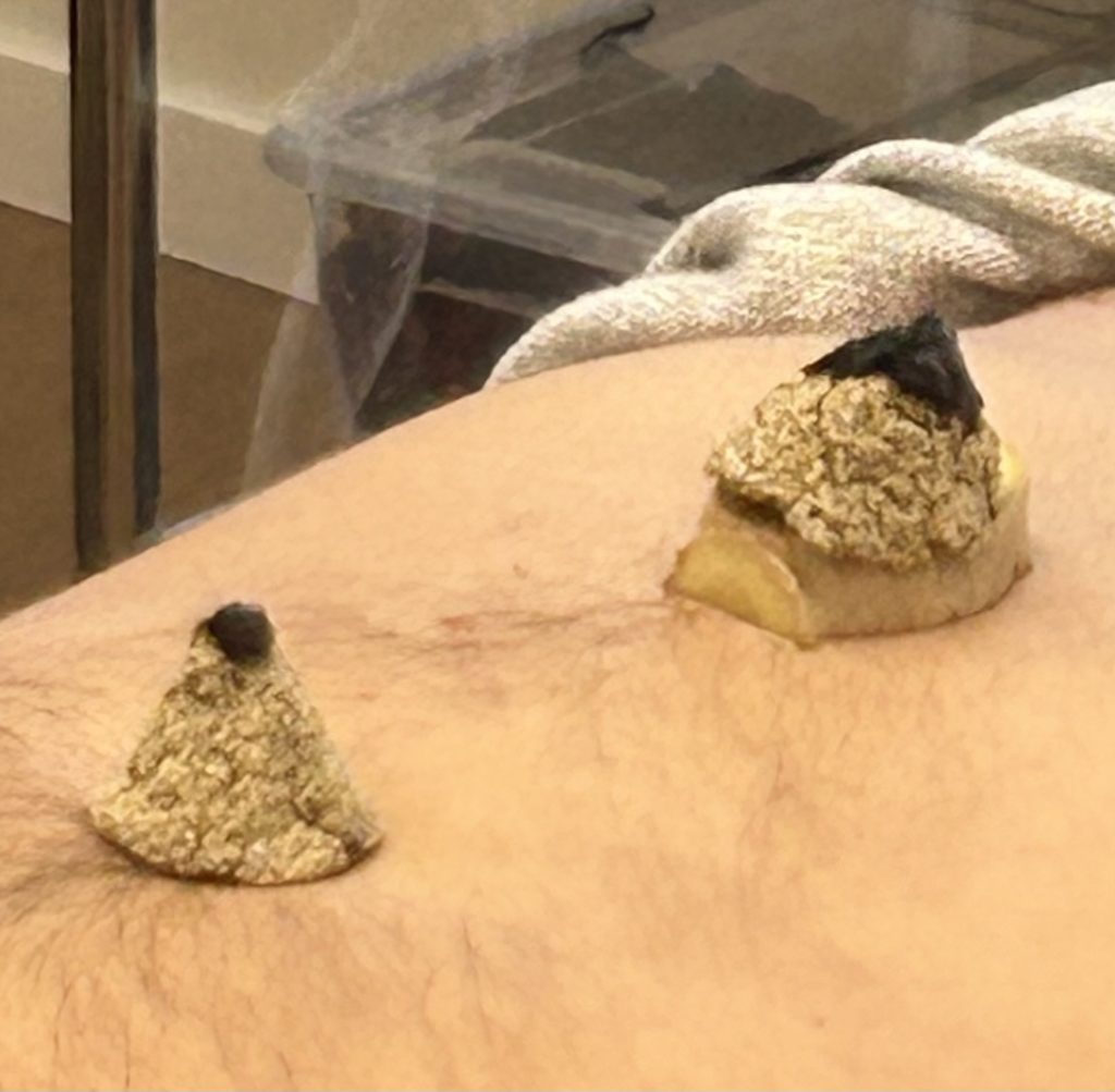 La moxibustion est l’art de chauffer et stimuler des points d’acupuncture grâce à des cônes ou bâton de moxa, composés d’armoise séchée.